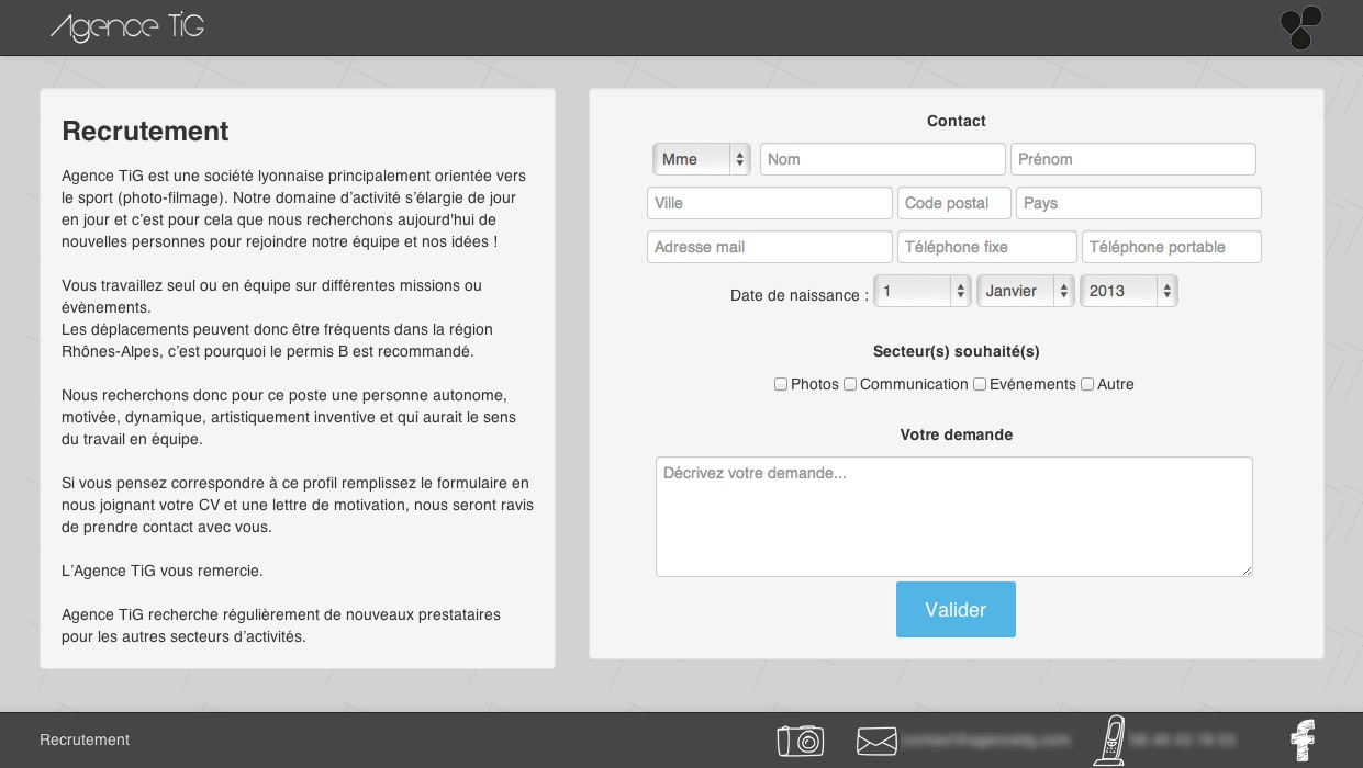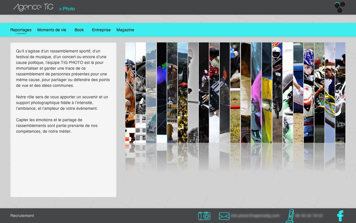 Following the goal behind the MobileTiG app here is a website made for a professional photographer. Its pages displays multiples possibilities: